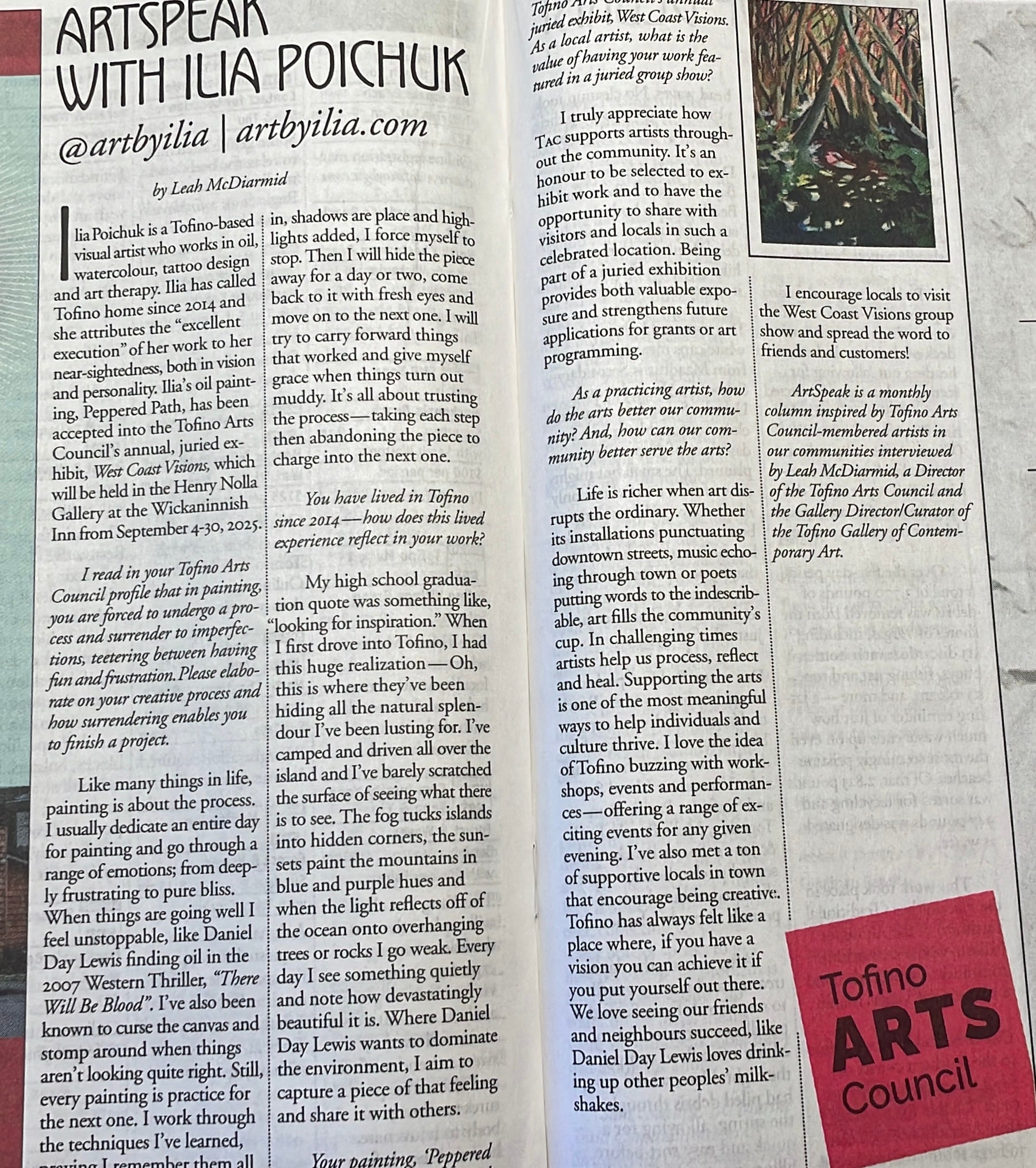 Tofino Gallery Of Contemporary ArtInterviewed by the lovely Leah McDiarmid for Augusts' issue of the local paper in Tofino 2025